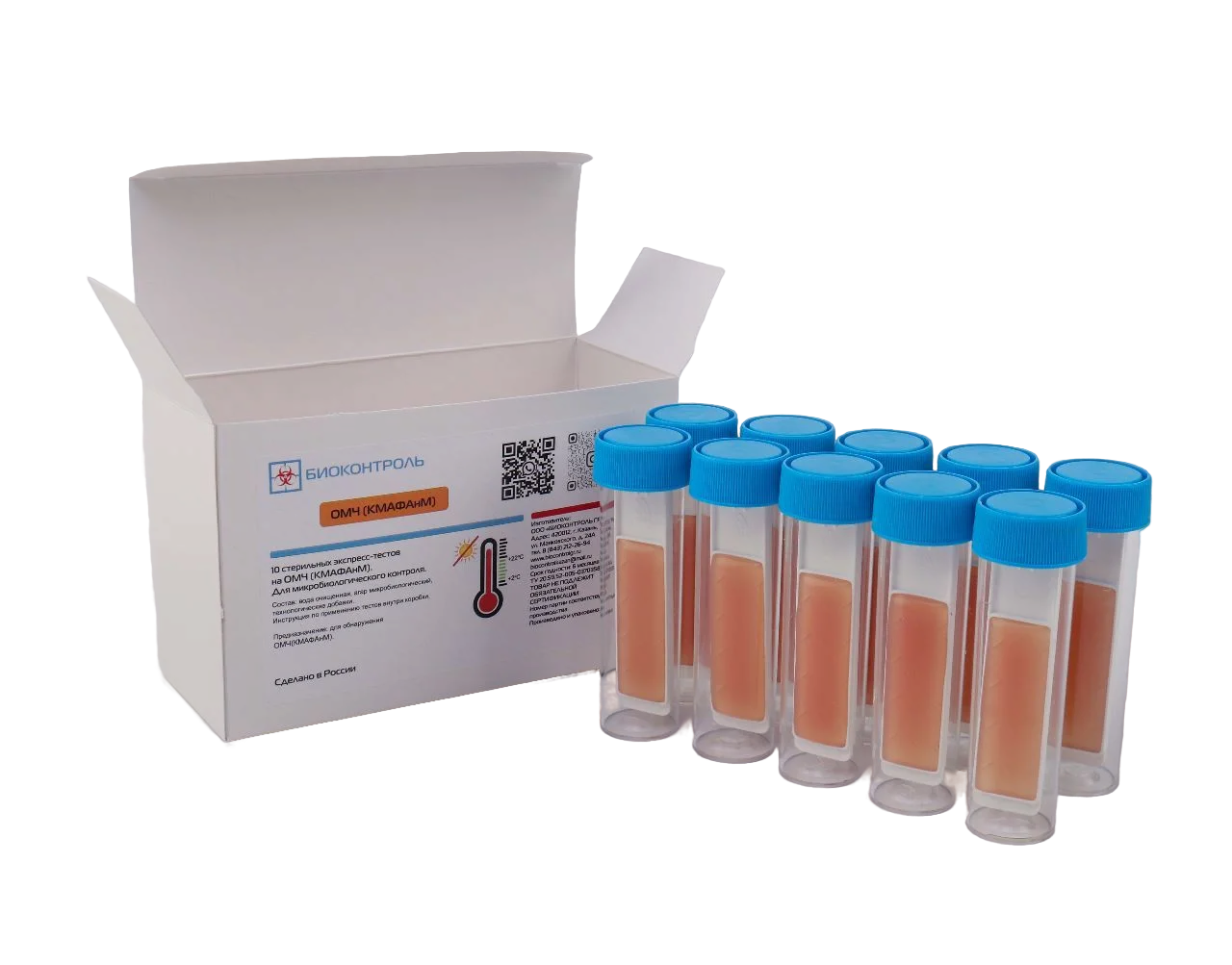 КМАФАнМ (ОМЧ)/КМАФАнМ (ОМЧ)- экспресс-тест для оперативного микробиологического контроля. КМАФАнМ — это количество мезофильных аэробных и факультативно анаэробных микроорганизмов. Главный показатель безопасности и свежести пищевых продуктов, указывающий на общую бактериальную обсемененность, уровень гигиены производства и правильность хранения. Тест представляет собой стаканчик (или пробирку) с завинчивающейся крышкой, к которой прикреплена пластинка.