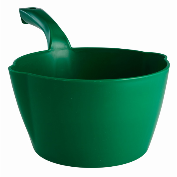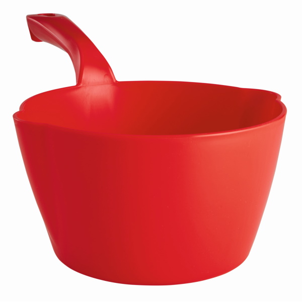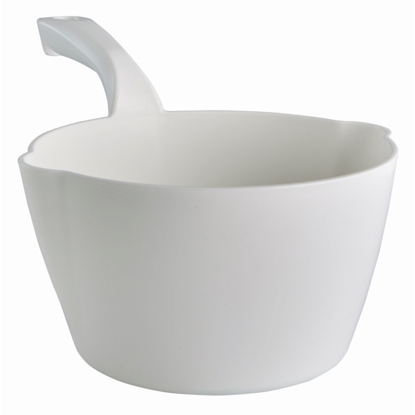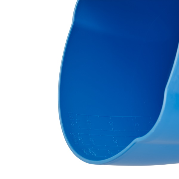 Эргономичный круглый ковш очень легкий и прочный. Желобки для переливания расположены с двух сторон, что позволяет держать ковш любой рукой. Цельная конструкция предотвращает скапливание бактерий, благодаря гладкой поверхности. Ковш является хорошим инструментом для переноса сухих и жидких ингредиентов на пищевых предприятиях. На внутренней стороне расположена мерная шкала.