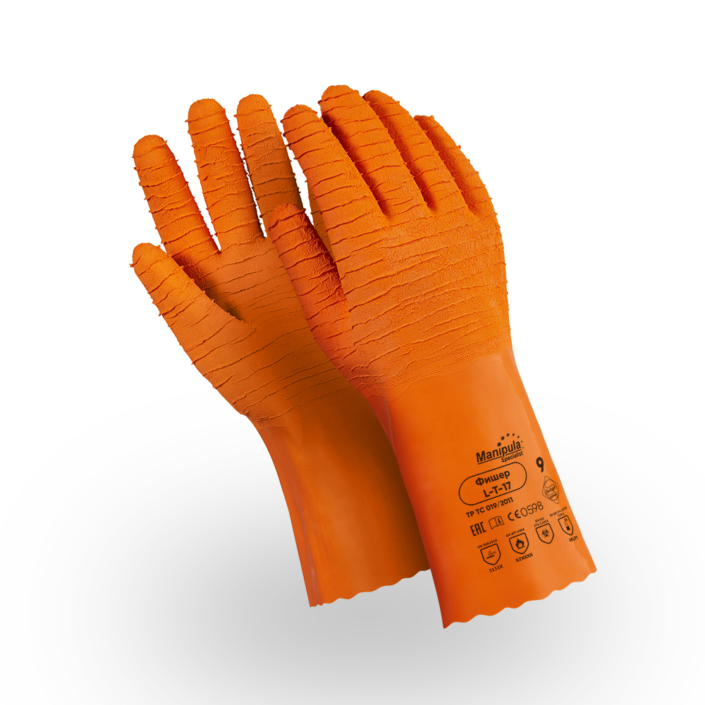 Многослойные кроеные перчатки, покрытые натуральным латексом. Предназначены для выполнения интенсивных работ во влажных и агрессивных средах. Рифленая текстура покрытия из плотного латекса обеспечивает крепкий захват предметов, а также высокую стойкость к истиранию и проколам. Толщина рабочей поверхности даёт возможность контакта с нагретой поверхностью до 250 °С (комфортная до 180 °С), а также термоизоляцию при работе с холодными покрытиями.